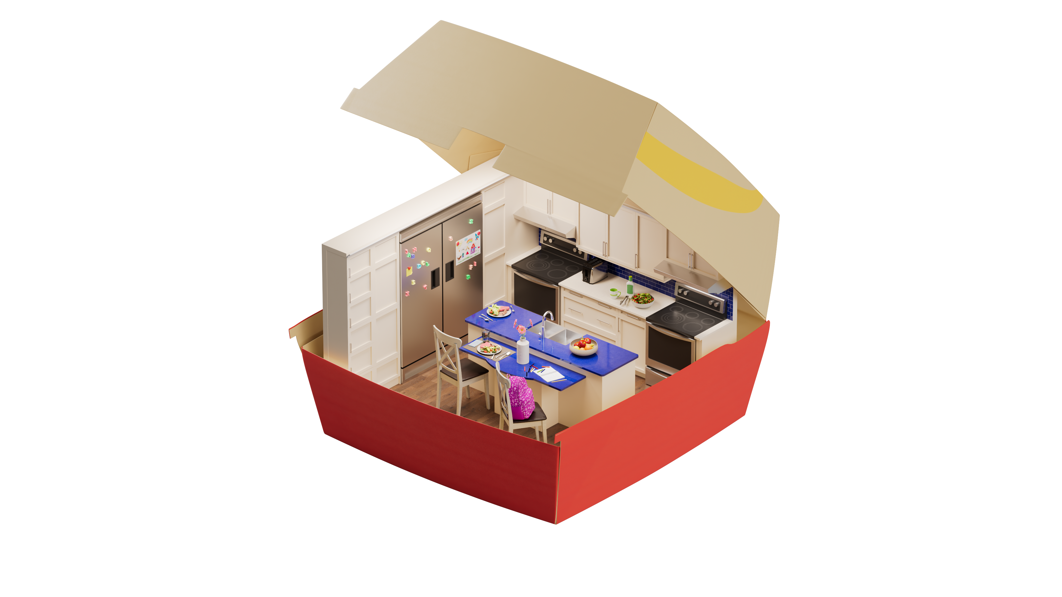 Communal kitchens enable families to enjoy prepared meals and connect with others